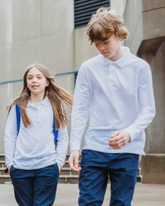 Our Boy's Long Sleeve Pique Polo Shirt is made with 100% cotton for ultimate comfort and breathability. With a classic pull-on closure and easy machine washability, this versatile polo shirt is a must-have for any school uniform wardrobe, available in navy blue and white.